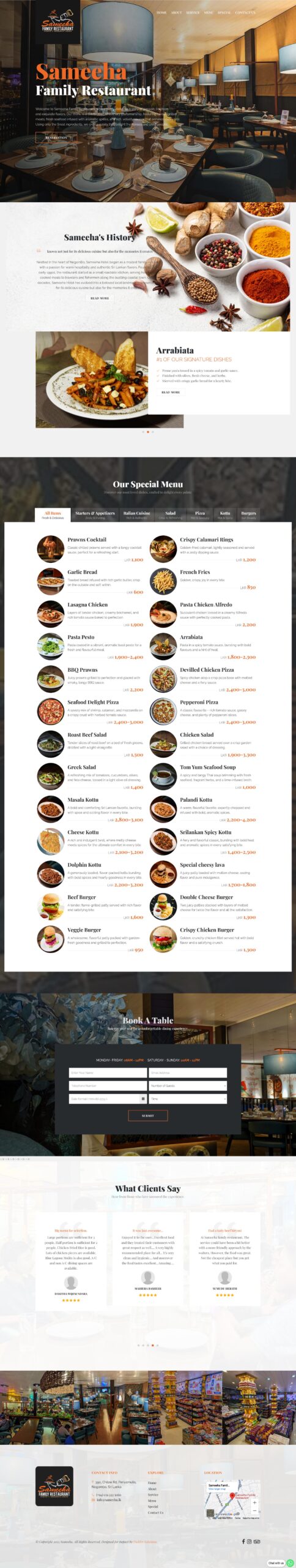 Sameeha Hotel, located in the heart of Negombo, began in the early 1990s as a humble family-run eatery serving home-cooked meals to travelers and locals. Over the years, it has grown into a beloved dining spot, known for authentic Sri Lankan flavors, especially seafood, and warm hospitality. Rooted in family recipes and local ingredients, Sameeha Hotel remains a cherished part of Negombo’s culinary and cultural landscape.